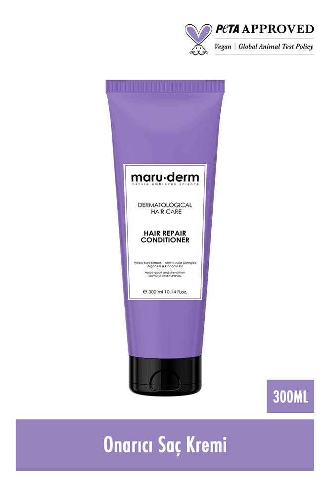Maruderm Onarıcı Saç Bakım Serisi, saçlara yoğun bakım sunmak üzere geliştirilmiş özel formülüyle saç tellerinin onarılmasına ve güçlenmesine yardımcı olur. Amino Asit Kompleksi, Willow Bark Ekstraktı, Argan Yağı ve Hindistan Cevizi Yağı ile zenginleştirilen içeriği, saçın nem dengesinin korunmasını desteklerken daha güçlü, parlak ve sağlıklı bir görünüm kazanmasına katkı sağlar.