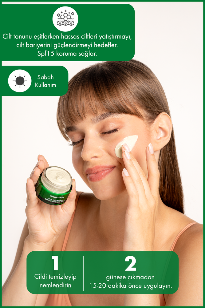 Cildin tonunu eşitlemeye, kızarıklık görünümünü azaltmaya ve cilt bariyerini desteklemeye yardımcı olur. Hafif renkli yapısıyla doğal makyaj görünümü sağlamayı hedefler. Aynı zamanda içerdiği SPF 15 sayesinde güneşin zararlı etkilerine karşı cildi korumaya yardımcı olur.