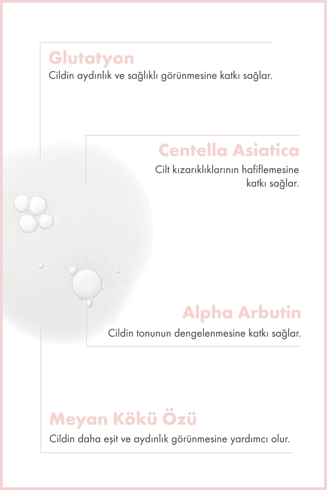 Öne Çıkan İçerikler: Glutatyon, Alpha Arbutin, Meyan Kökü Özü