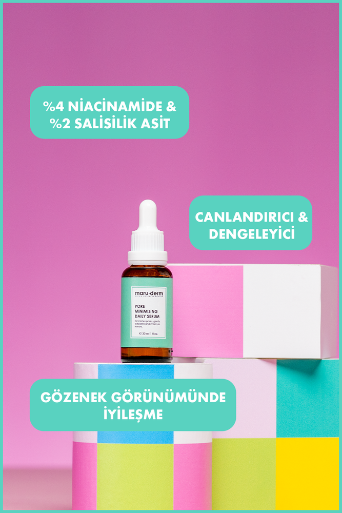 Ciltteki fazla sebumu dengelemeye, gözenek görünümünü azaltmaya ve daha pürüzsüz bir cilt dokusu elde etmeye yardımcı olacak şekilde geliştirilen formül; %2 Salisilik Asit (BHA), %4 Niacinamide ve Peptit Kompleksi ile zenginleştirilmiştir. Salisilik Asit, gözeneklerin derinlemesine arınmasını sağlayarak siyah nokta ve sivilce oluşumunu önlemeye destek olurken, Niacinamide cilt tonunu eşitleyip fazla yağ üretimini dengeler. Peptitler ise cildin sıkılığını artırarak daha canlı ve pürüzsüz bir görünüm kazandırır. Hafif yapısıyla kolay emilir, matlaştırıcı etkisiyle cildin gün boyu dengede kalmasını destekler. Düzenli kullanımda cilt daha arınmış, sıkı ve dengeli bir görünüme kavuşur.
