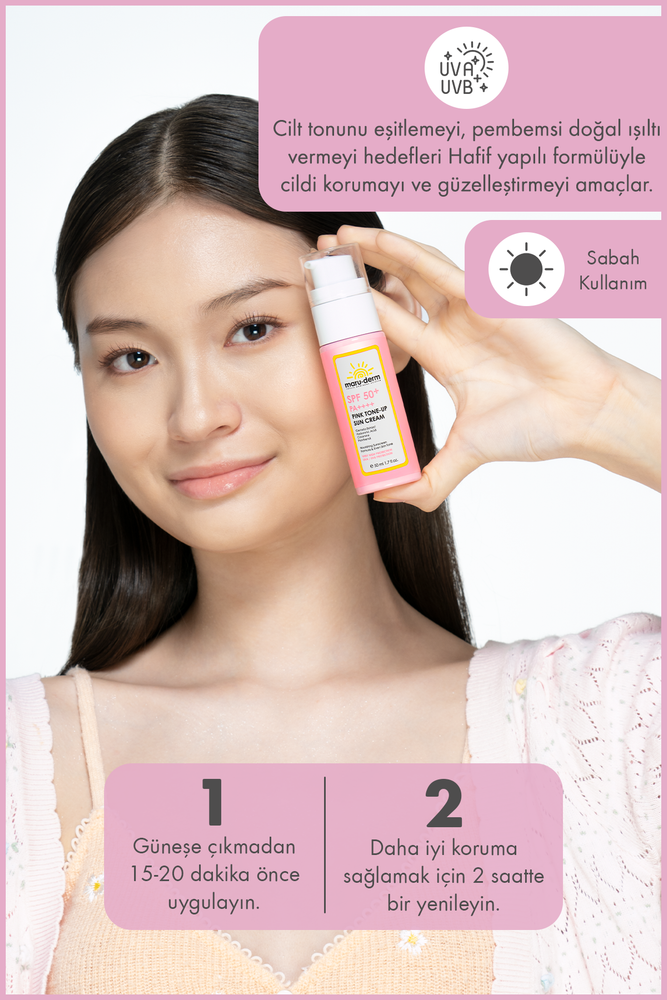 Yeni nesil Kore filtreleri ile formülize edilmiştir. Özel formülü sayesinde beyazlık bırakmaz ve cilde kolayca nüfuz eder. İçerisinde bulunan SPF 50+ faktörü ile cildi güneşin zararlı etkilerinden korurken, aynı zamanda Calamine ve Centella Extract gibi doğal içerikler sayesinde ciltteki tahrişleri yatıştırır ve hücre yenilenmesini destekler. Yüksek UV koruması sayesinde cildinizi güneşin zararlı ışınlarına karşı etkili bir şekilde korur. Cildinizdeki kırmızılıkları kapatarak, cilt tonunuzu eşitleyip tek ton haline getirir ve tone-up yani pürüzsüz bir cilt etkisi sağlar. Eşsiz formülü sayesinde cilde anında aydınlık bir görünüm kazandırır. Ayrıca hafif pembe rengiyle yüzünüze doğal bir ışıltı katar.