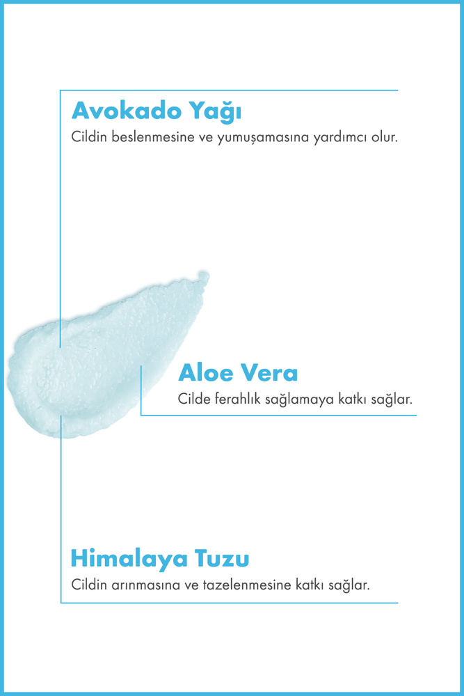 Himalaya Tuzu Vücut Peelingi, cildi derinlemesine arındırmaya yardımcı olurken ölü hücrelerin uzaklaştırılmasını destekler. Squalane ve Hindistan Cevizi Yağı ile zenginleştirilen formülü, cildin nem dengesinin korunmasına katkı sağlar. Düzenli kullanımda cildin daha yumuşak, pürüzsüz ve bakımlı bir görünüm kazanmasına yardımcı olur.