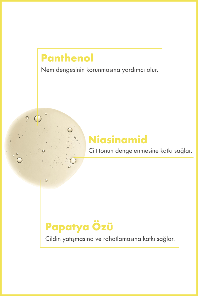Öne Çıkan İçerikler: Niacinamide, Panthenol, Papatya Özü Ekstraktı