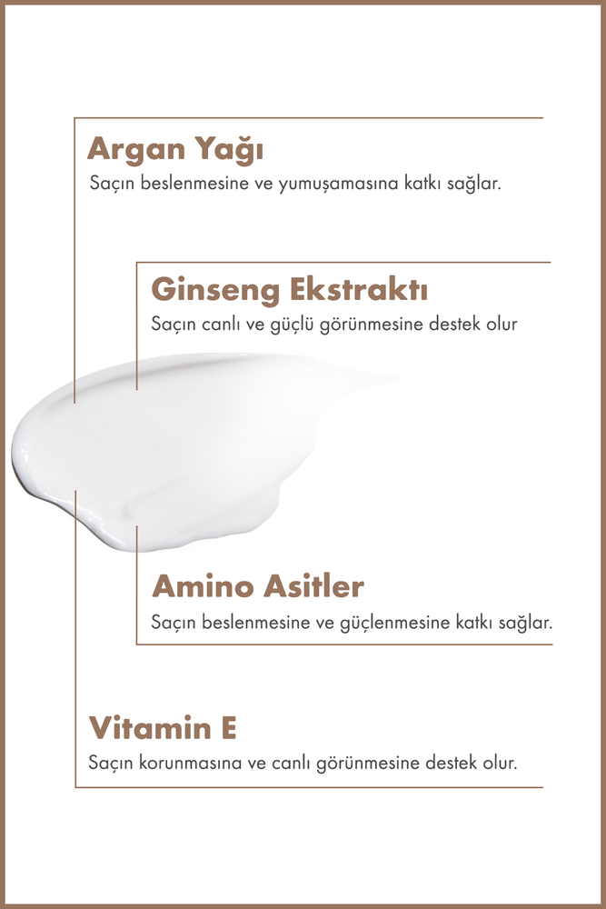 Argan Yağı ve Panax Ginseng (Asya Ginsengi) özü içeren bu duş öncesi saç bakım maskesi; kuruluk, matlık ve yıpranma görünümü yaşayan saçlar için geliştirilmiştir. Zengin içerikleri sayesinde saç tellerinin nem dengesini desteklemeye yardımcı olur ve saçın daha canlı, daha yumuşak ve daha hacimli görünmesine katkı sağlar. Duş öncesi bakım adımı olarak saç rutinine kolayca entegre edilir.