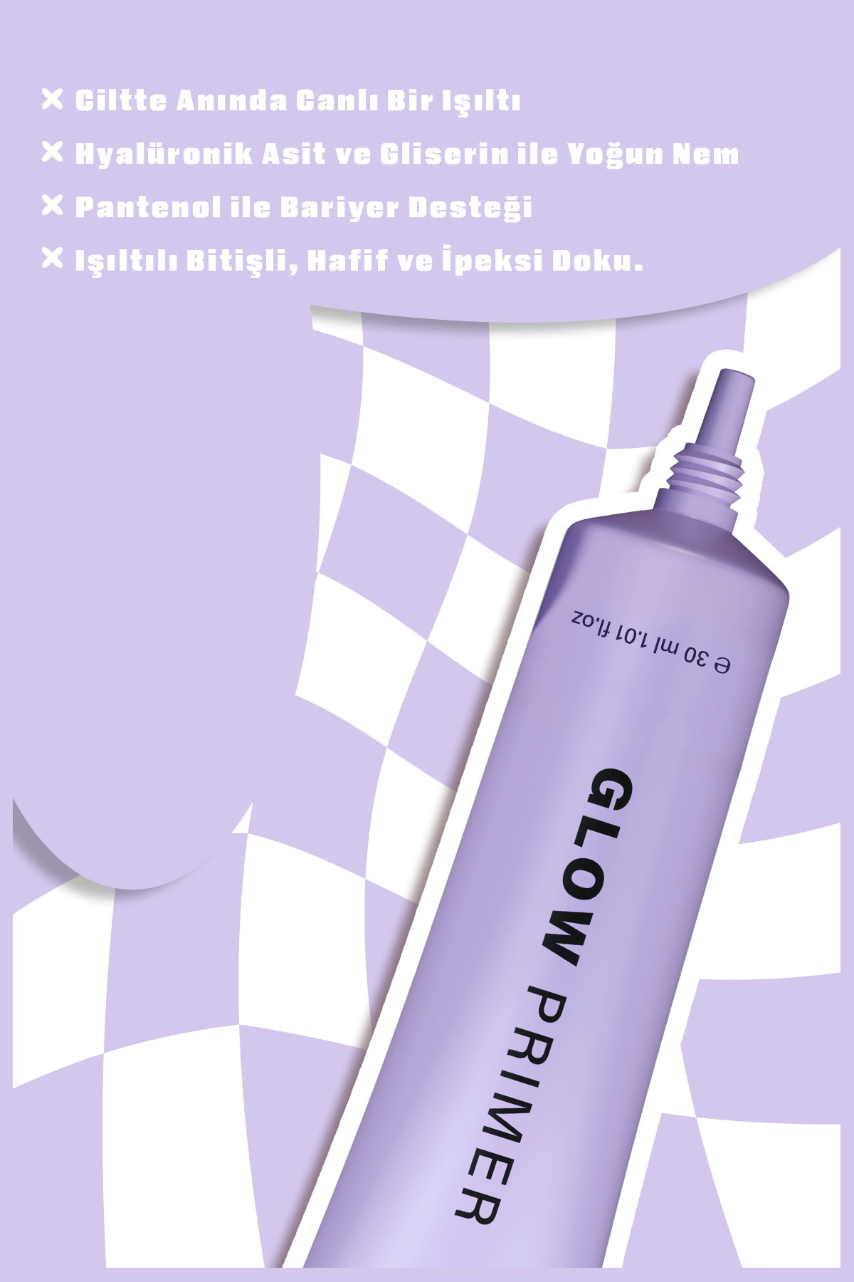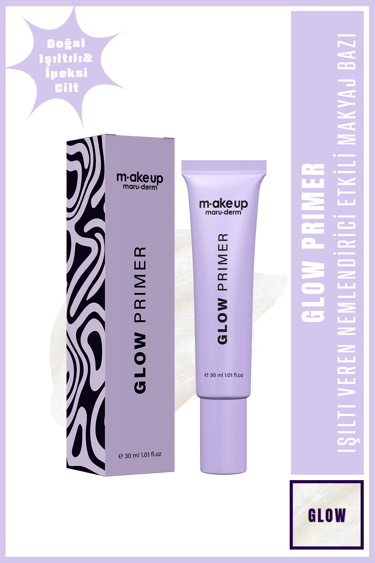 Glow Primer, cilde ekstra aydınlık ve nem desteği sağlamaya yardımcı olan ışıltı verici makyaj bazıdır. Makyaj öncesi cildi daha canlı, daha taze ve daha pürüzsüz göstermeye destek olur. Işığı yansıtan pigment teknolojisi sayesinde donuk görünümü azaltmaya yardımcı olur ve cilde sağlıklı bir parlaklık kazandırır.