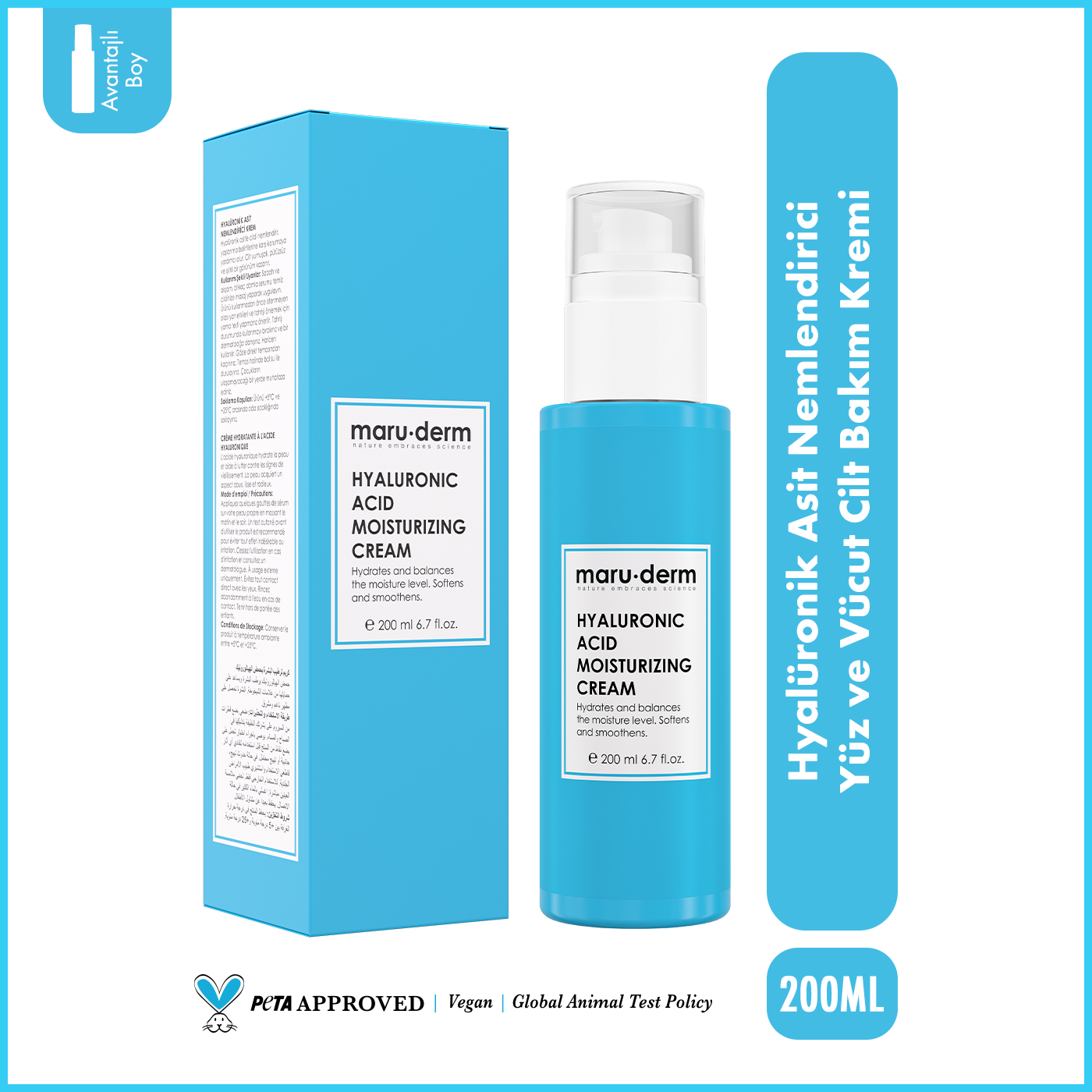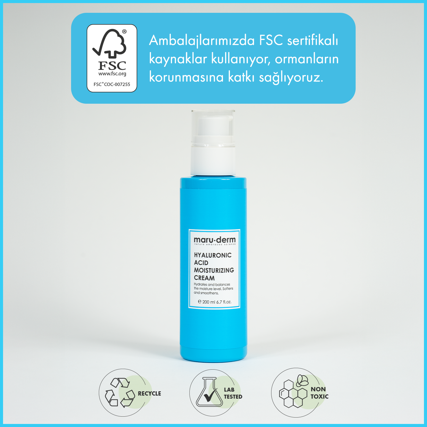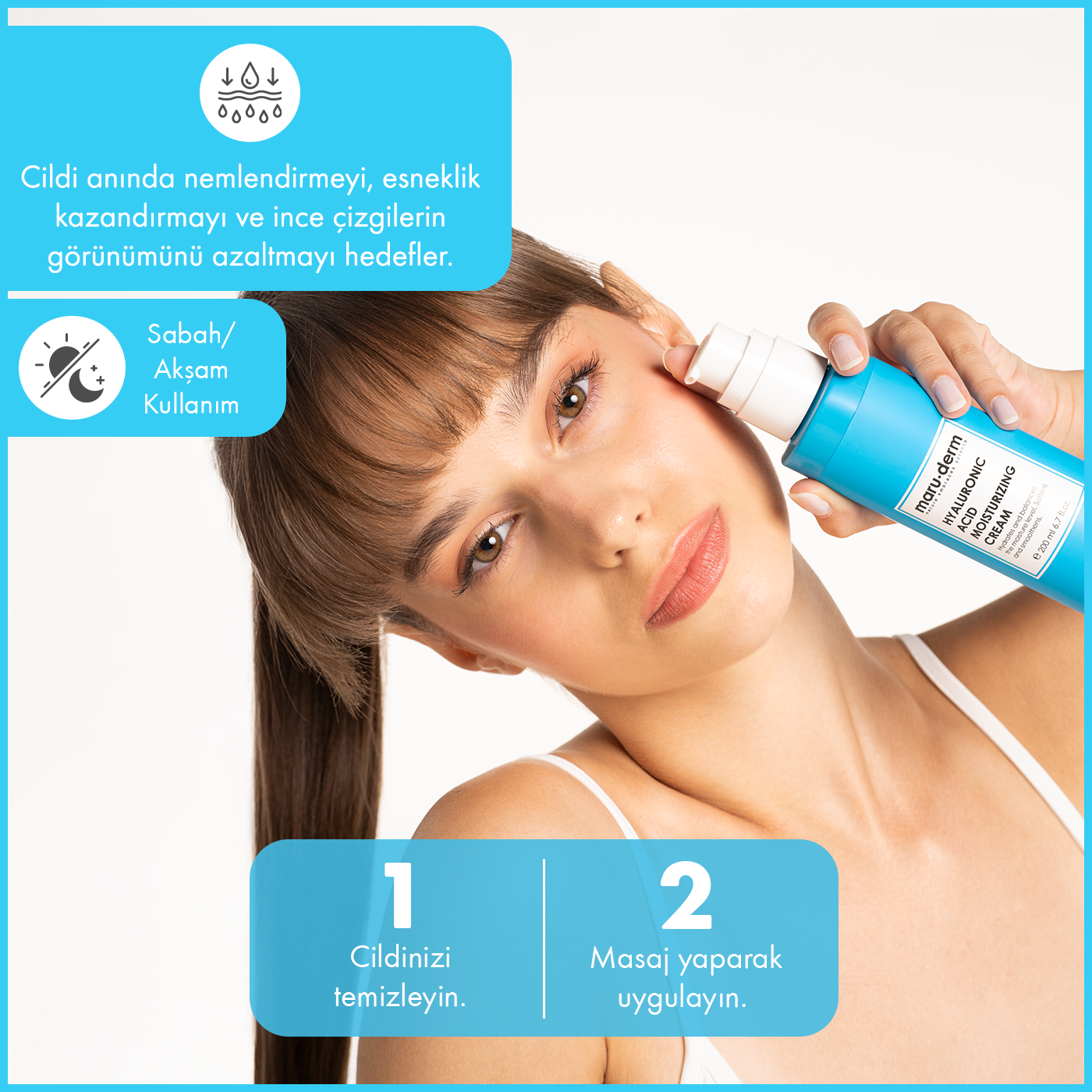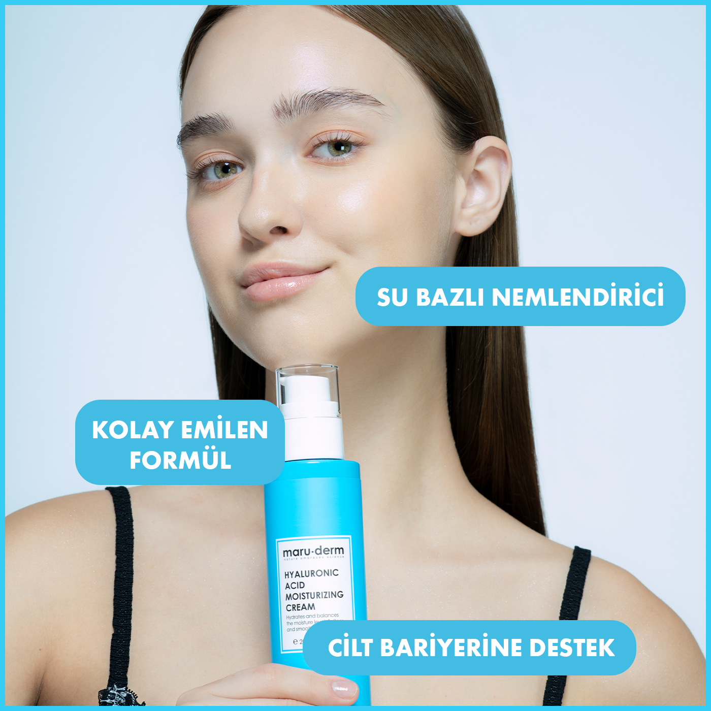 Maruderm Hyalüronik Asit Nemlendirici Cilt Bakım Kremi, cildin yoğun şekilde nemlenmesine yardımcı olmak ve cilt bariyerinin desteklenmesine katkıda bulunmak için geliştirilmiş günlük bakım kremidir.