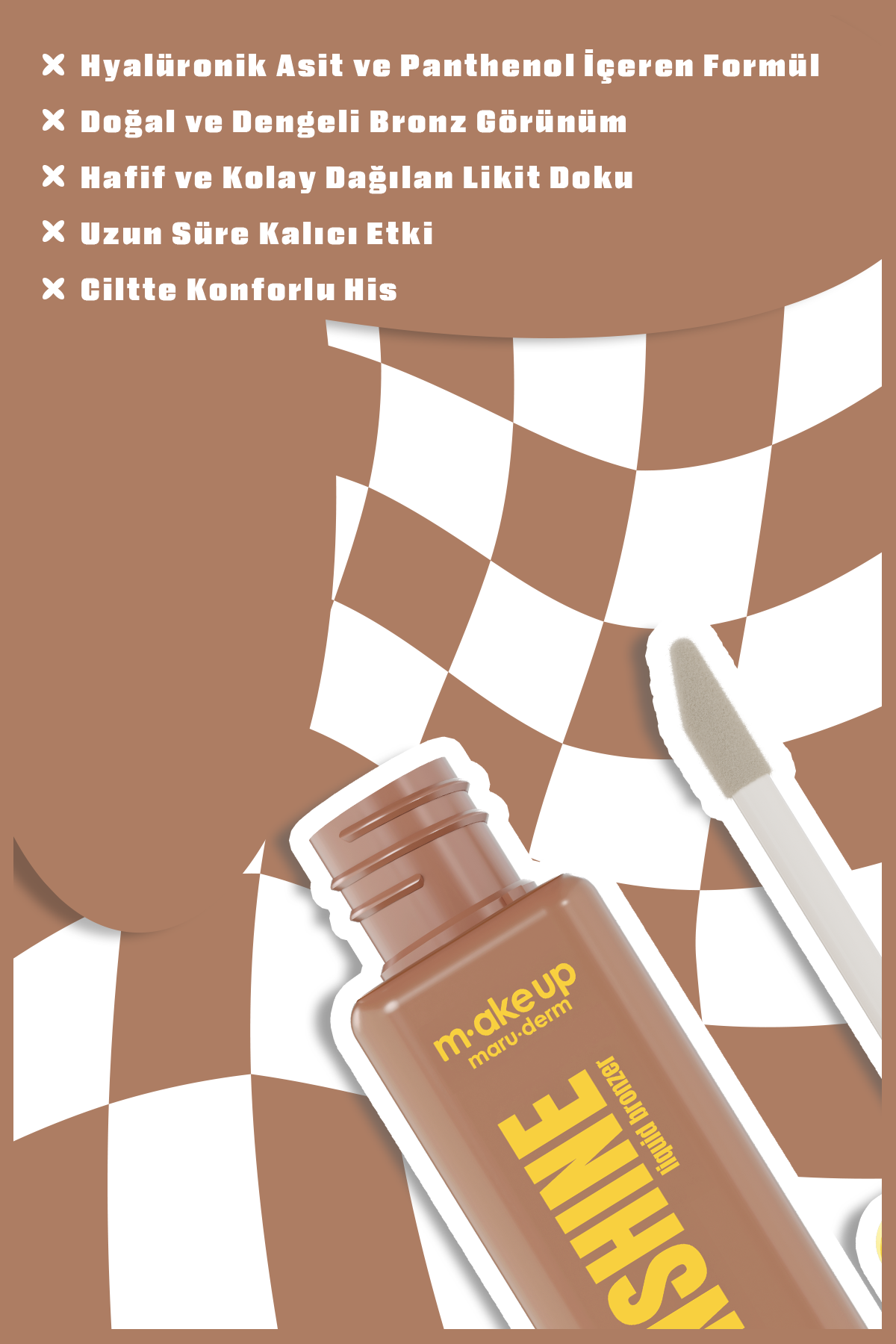 Yoğun pigmentli likit bronzer. Mocha Brown tonu ile cilde derin ve belirgin bronz görünüm kazandırmaya yardımcı olur. Katmanlanabilir yapısıyla hem hafif gölgelendirme hem dramatik kontür sağlar. Hyaluronik asit ve panthenol ile bakım desteği sunar. Kolay dağılan formüle sahiptir.