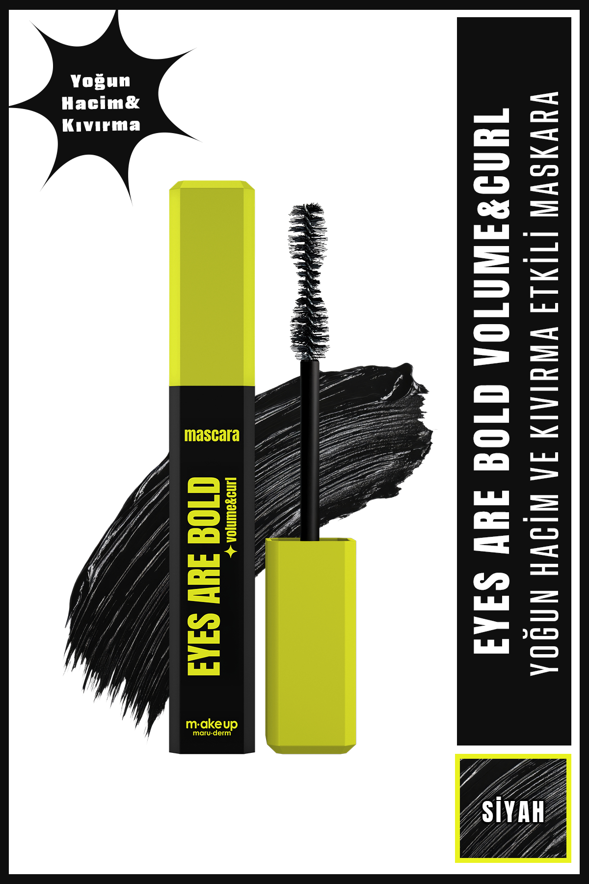 Yoğun hacim ve kıvırma etkili maskara. Kirpikleri daha dolgun ve kalkık göstermeye yardımcı olur. Derin siyah pigment sunar. Katmanlanabilir yapıya sahiptir. Günlük ve dramatik makyajlar için uygundur.