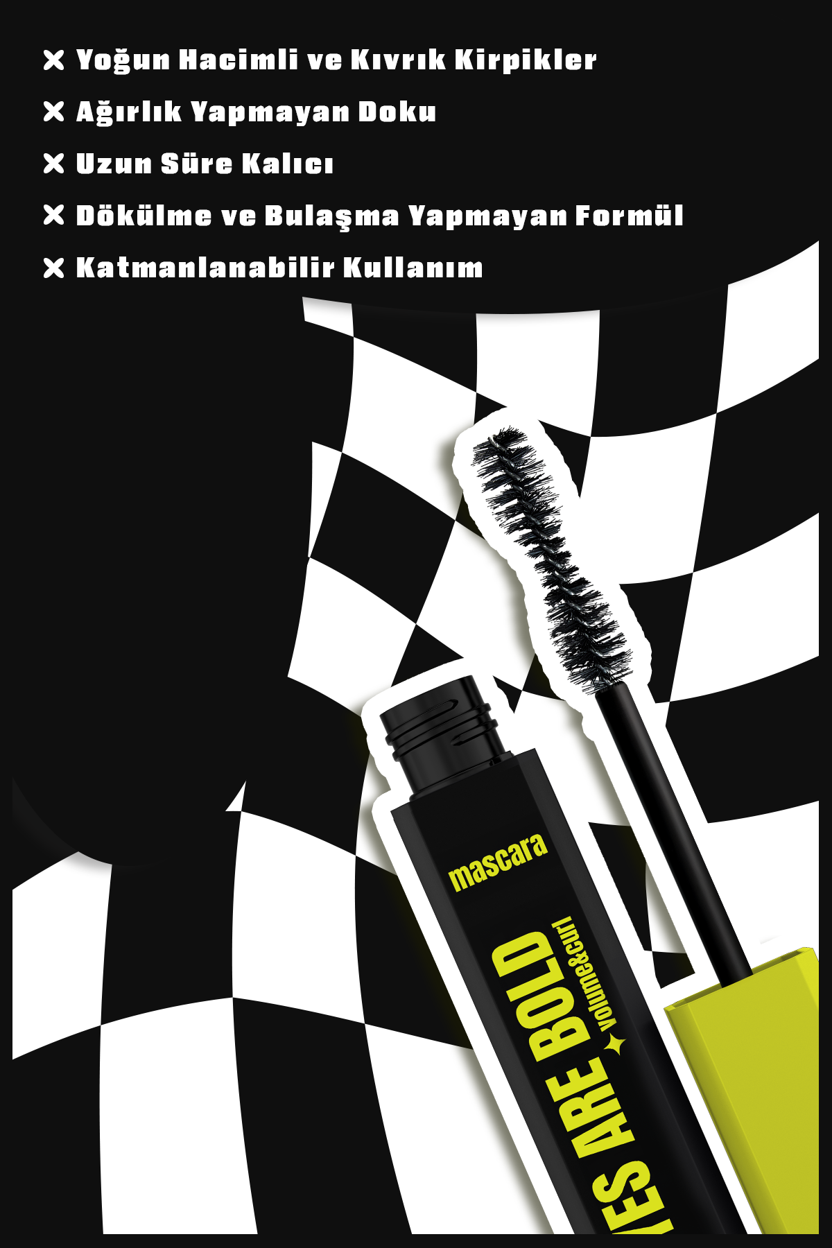 Temel etkisi hacim ve kıvırmadır. Kirpikleri daha dolgun gösterir; katmanlandıkça dramatik etki artar.