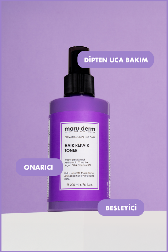 Maruderm Onarıcı Saç Toniği, tricholojik bilimlerin ilerlemesiyle uyumlu olarak formüle edilmiş, saçın yapısal bütünlüğünü destekleyen ve iyileştiren bir üründür. İçeriğinde bulunan Amino Asit Kompleksi, Söğüt Kabuğu Ekstraktı (Willow Bark Extract), Argan Yağı ve Hindistan Cevizi Yağı gibi değerli bileşenlerle zenginleştirilmiştir. Yıpranmış ve kırık saç tellerinin onarılmasına yardımcı olurken, saçın daha parlak, ışıltılı ve hacimli bir görünüm kazanmasını sağlamayı hedefler.