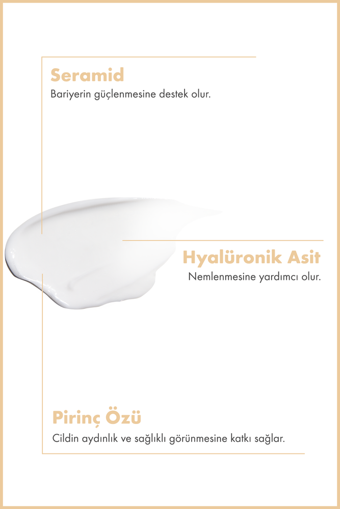 Pirinç özü, hyalüronik asit ve ceramide içeren bu bakım kremi, cildin nem dengesini desteklemeye yardımcı olur. Cildin daha aydınlık, pürüzsüz ve sağlıklı görünmesine katkıda bulunur.