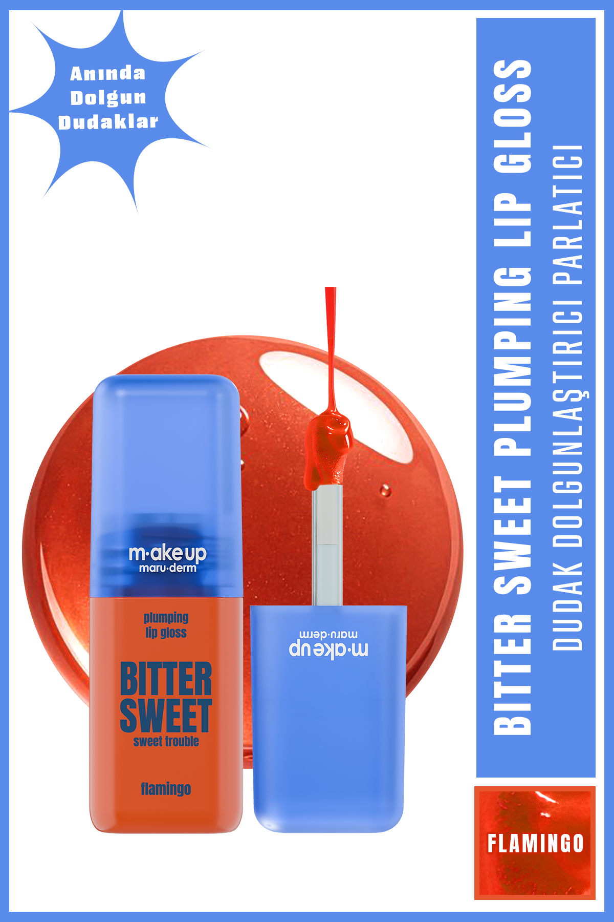 Flamingo, yaz makyajları ve enerjik görünümler için ideal bir seçenektir. Tek başına dikkat çekici bir dudak görünümü sunar veya ruj üzerine uygulanarak ekstra hacim kazandırır.