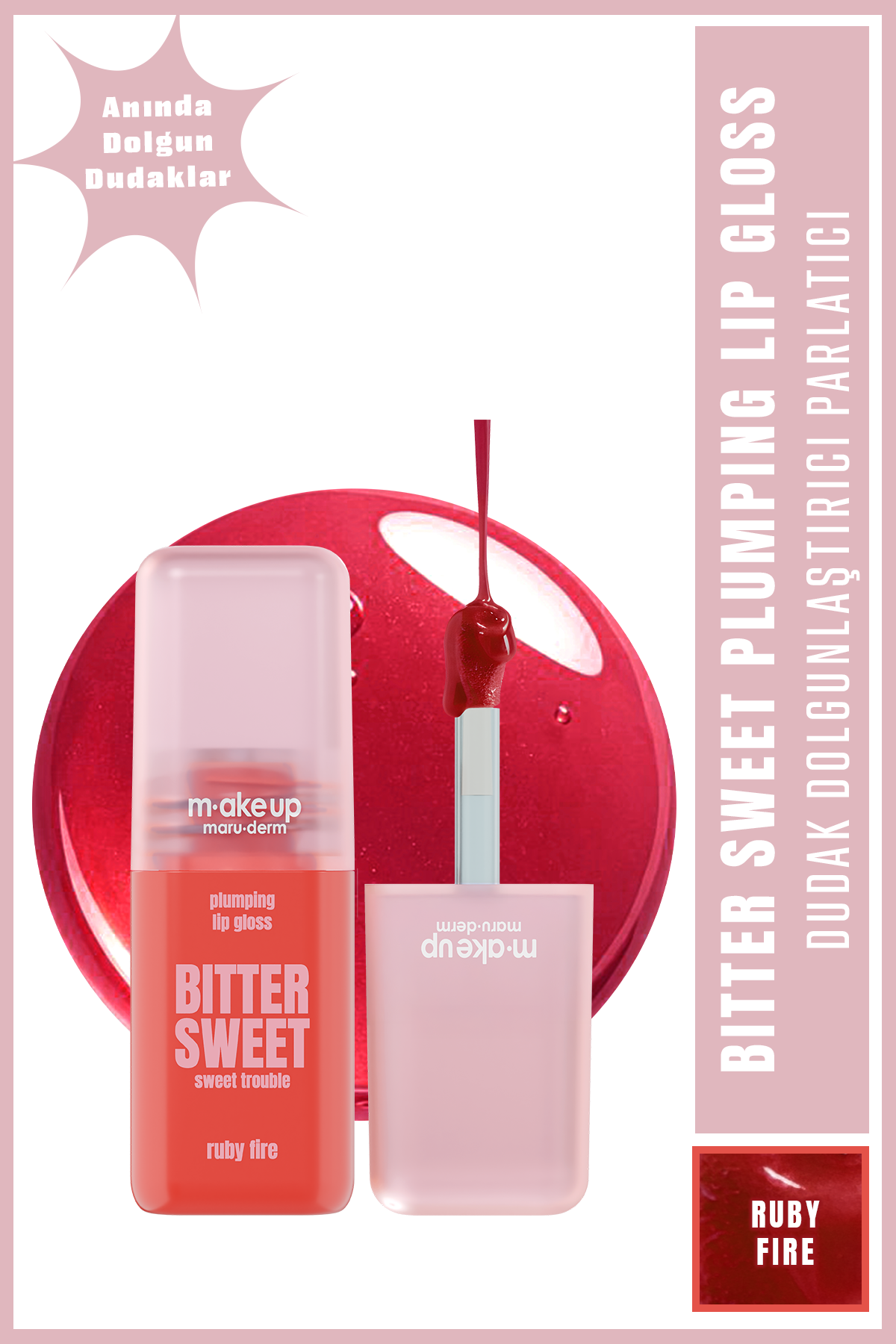 Ruby Fire, özel gün makyajlarında tek başına iddialı bir dudak görünümü sunar veya mat ruj üzerine uygulandığında ekstra hacim ve parlaklık kazandırır.