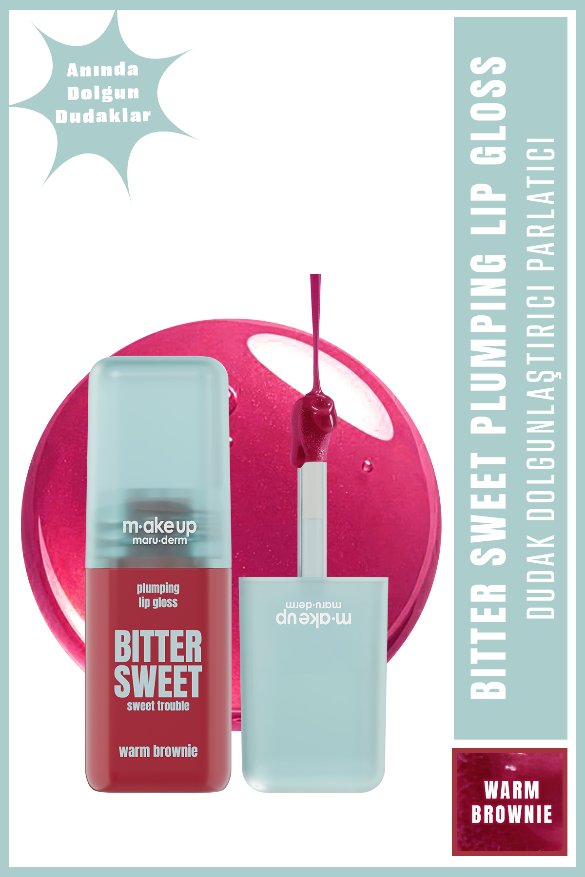Dolgunlaştırıcı etkili, yüksek parlaklık sunan dudak parlatıcısı. Warm Brownie tonu ile dudaklara sıcak kahve–nude renk kazandırmaya yardımcı olur. Hyaluronik asit ve plumping kompleksi ile hacim görünümünü destekler. Nem desteği sağlar. Tek başına veya ruj üzerine kullanılabilir.