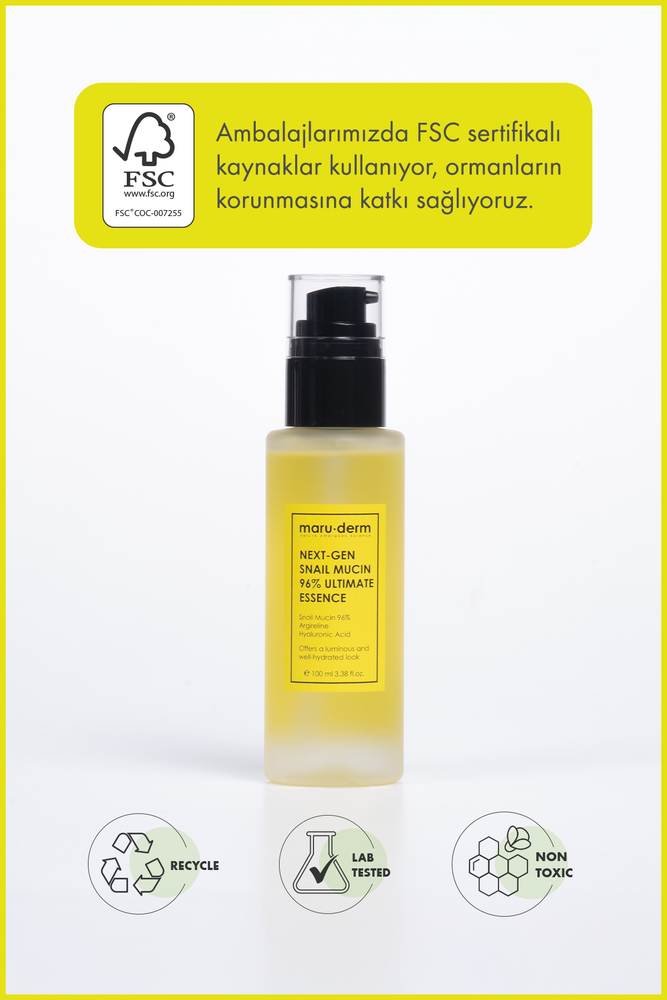 %96 oranında Salyangoz Müsini (Snail Secretion Filtrate) içeren bu yoğun bakım serumu; nem kaybı, donukluk ve elastikiyet görünümünde azalma yaşayan ciltler için geliştirilmiştir. Hyaluronik Asit ve Argireline ile zenginleştirilmiş formülü, cildin nem dengesini desteklemeye yardımcı olur ve daha canlı, daha dolgun bir görünümün oluşmasına katkı sağlar. Hafif ve hızlı emilen yapısı sayesinde cilt bakım rutininin ilk adımında kullanıma uygundur.