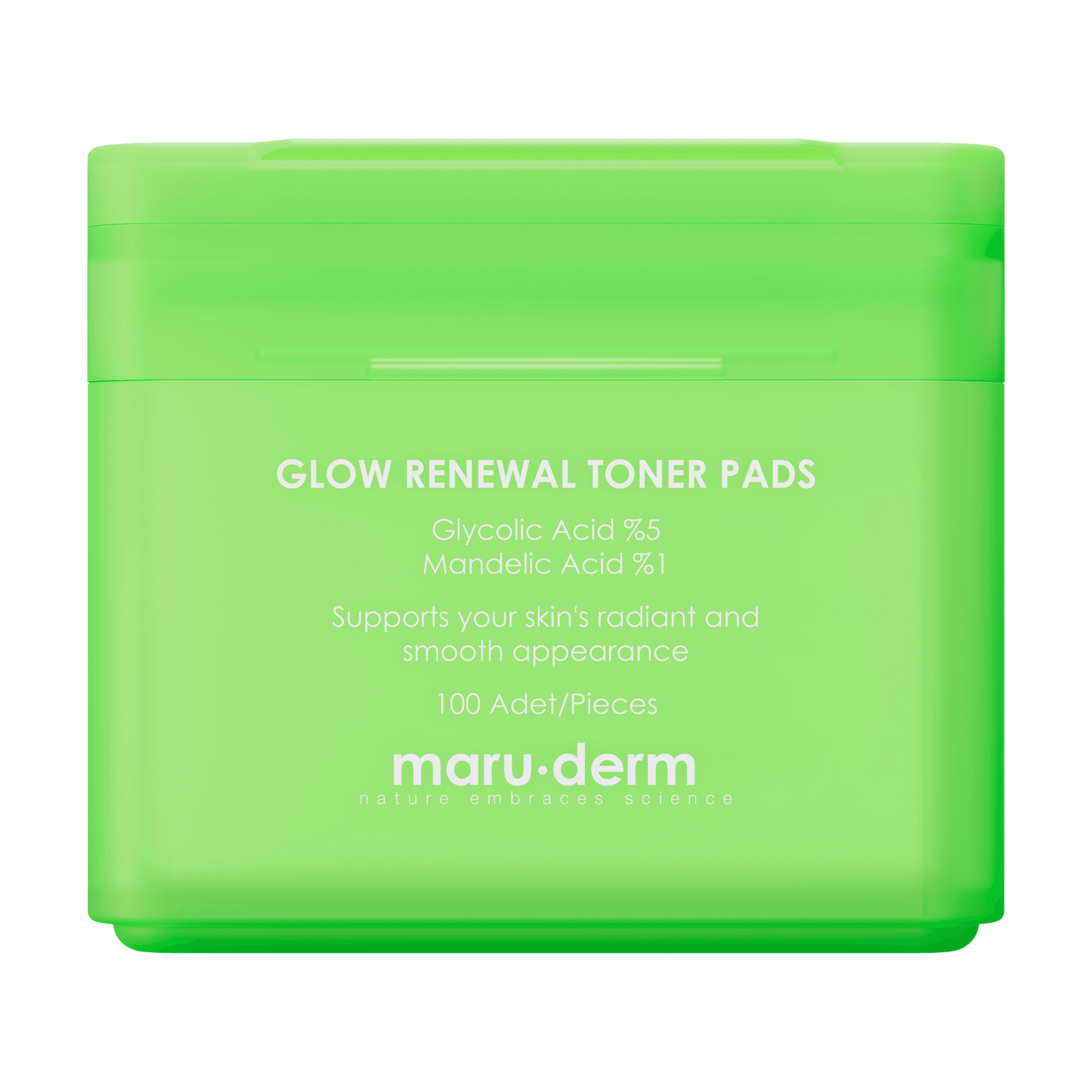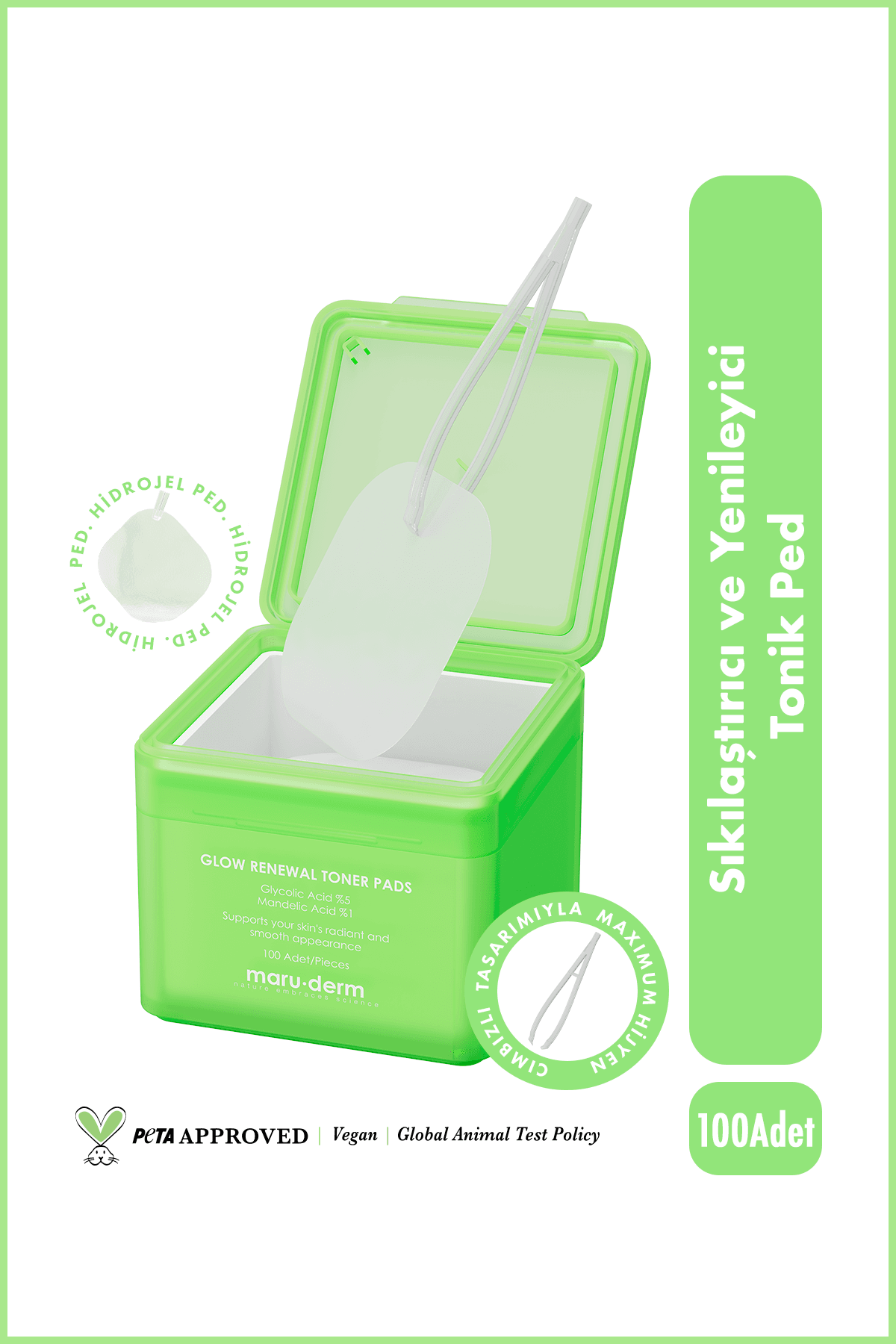 Maruderm %5 Glikolik Asit ve %1 Mandelic Acid içeren Sıkılaştırıcı ve Yenileyici Hidrojel Tonik Ped, cilt yüzeyinin nazik şekilde yenilenmesine yardımcı olmak ve cildin daha pürüzsüz görünmesini desteklemek için geliştirilmiş AHA içerikli bakım pedleridir.